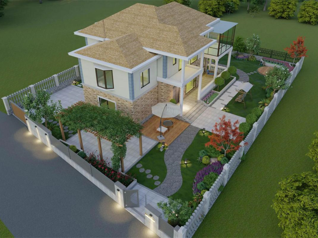 泰安私家庭院小區(qū)陽臺大理石木塑板鋪設(shè)